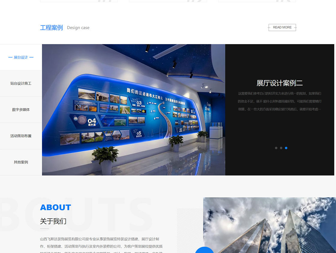 山西飛斯達裝飾展覽有限公司是專(zhuān)業(yè)從事裝飾展覽特裝設計搭建、展廳設計制作、桁架搭建、活動(dòng)策劃與執行及室內外裝修的公司,為客戶(hù)策劃展位提供優(yōu)質(zhì)的系統化服務(wù),能為客戶(hù)提供展覽會(huì )前期策劃、設計、構思、現場(chǎng)搭建、應急維護和展后拆卸、巡回展出及倉儲等全面服務(wù),致力于將商業(yè)信息藝術(shù)化展現,為客戶(hù)在有限的空間里通過(guò)個(gè)性化的、有特色鮮明的展示策劃設計制作來(lái)擴大企業(yè)產(chǎn)品影響力,提升品牌形象。公司以豐富的展臺現場(chǎng)經(jīng)驗取得了客戶(hù)的認同。